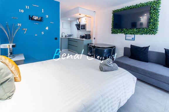 Living Room + Kitchen + Bedroom + Bathroom + Balcony